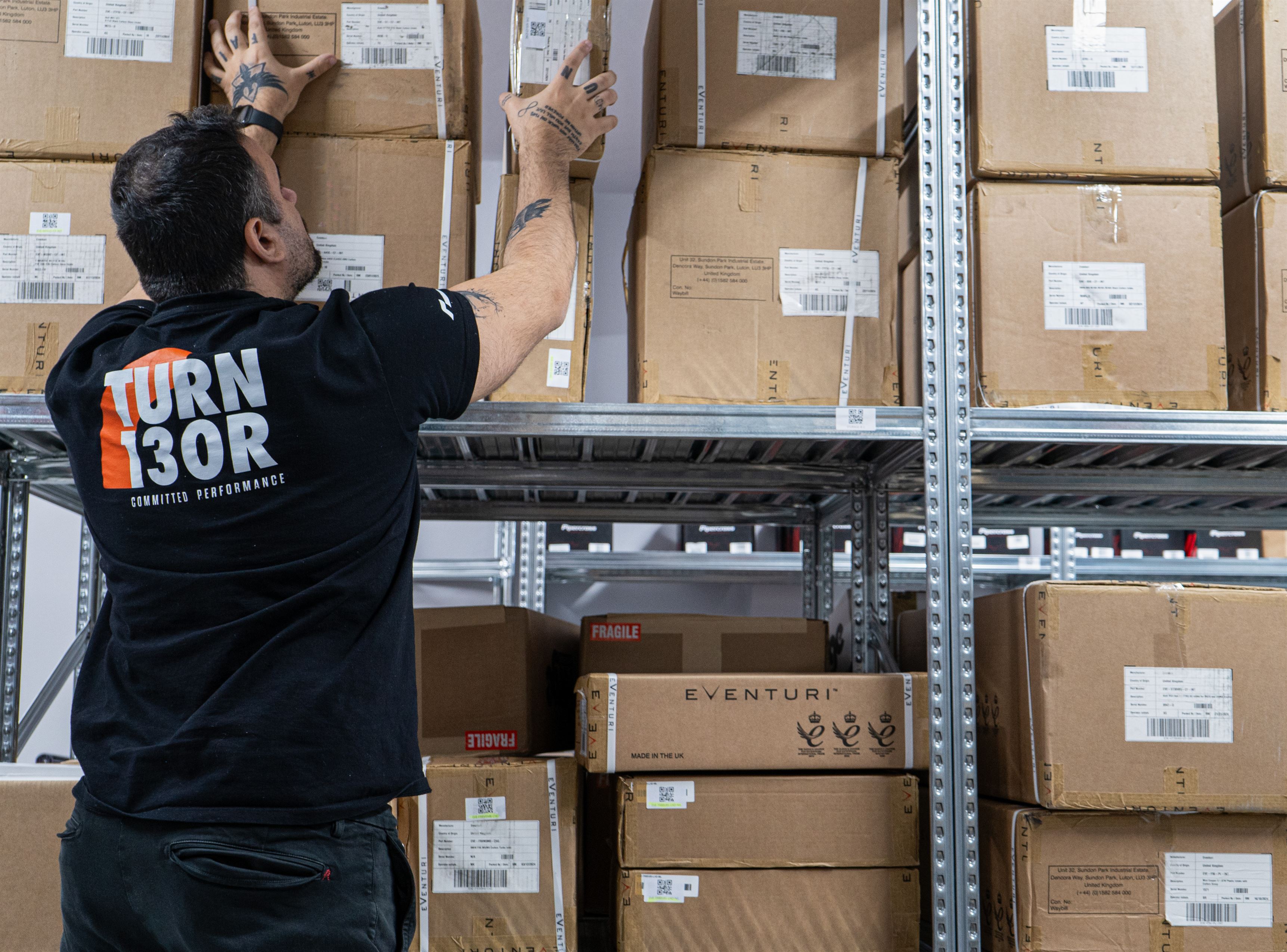 Turn 130R legt Wert darauf, dass die Produkte versandbereit sind, und hält ganzjährig mindestens 90 % der Artikel jeder Marke auf Lager. Wir bearbeiten Bestellungen und organisieren den Versand schnell dank unserer maßgeschneiderten Tools und Software. Außerdem zeichnen wir alles in unseren Lagern auf Video auf und überprüfen es live, um sicherzustellen, dass alles korrekt abläuft, ohne Fehler.
